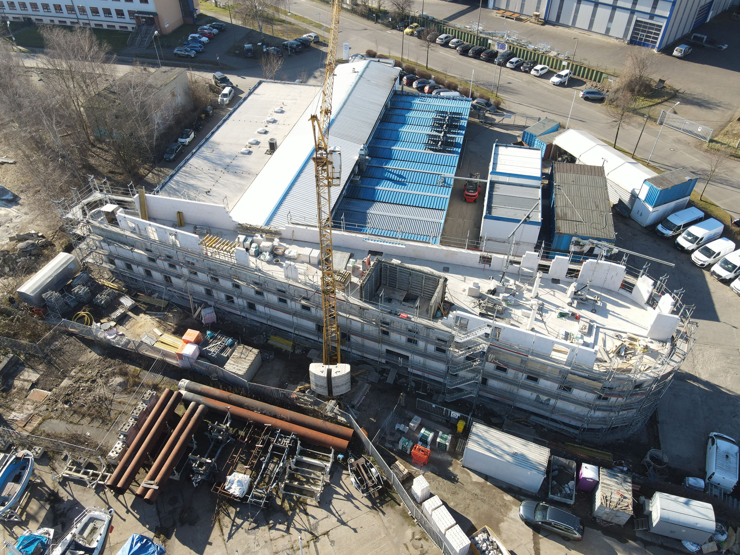 Für einen Erweiterungsbau der Dr. Diestel GmbH am Sitz in Rostock war ein Fassadenmaterial gefragt, das sich optisch an den Bestand mit Trapezprofilen an der Gebäudehülle angleicht. Findig wurde man schließlich bei einem langjährigen Geschäftspartner: Auf einer Nettofassadenfläche von rund 885 m² kamen Kassetten von Lindab zum Einsatz – jede davon nach Zeichnung auf Maß produziert.