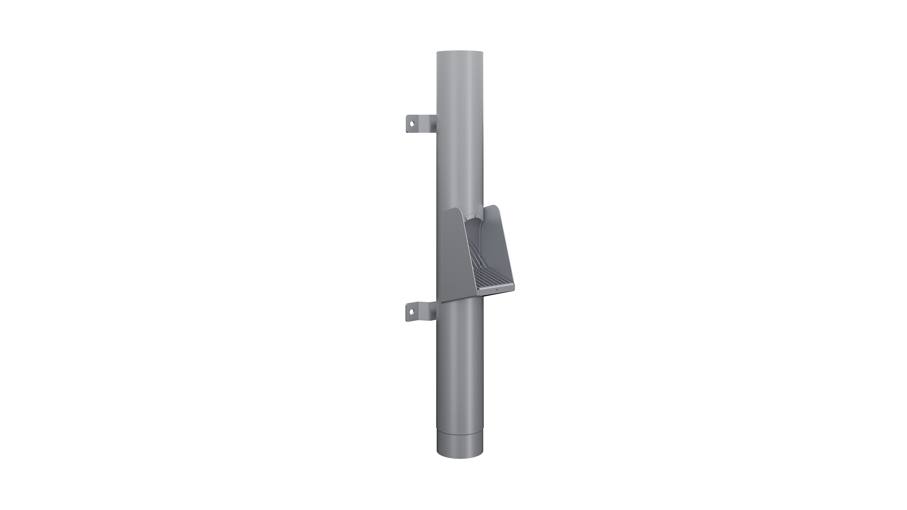 Ein verstärktes Standrohr, Länge 300 oder 850 mm, mit selbstreinigendem Laufsieb an der Unterseite. Ideal für öffentliche Bereiche mit Verkehr, um Schäden an Dachrinnensystemen zu vermeiden. Wählen Sie zwischen farbig beschichteten, Edelstahl- oder feuerverzinkten Oberflächen. Die Produkte bestehen aus 2 mm feuerverzinktem Stahl oder 1,5 mm Edelstahl.